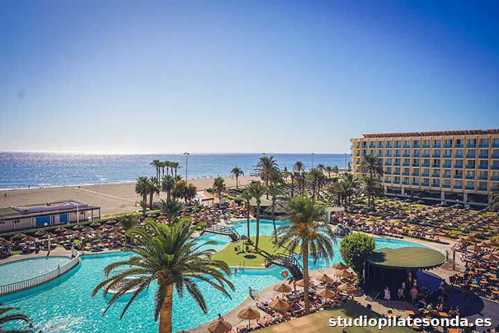 Hotel con una piscina cubierta y otra exterior, actuaciones en directo, restaurante buffet y juegos de playa.